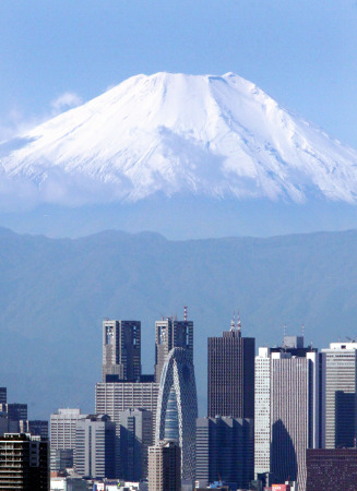 台風一過の都心上空に浮かび上がる富士山=2009年10月27日午前9時41分、